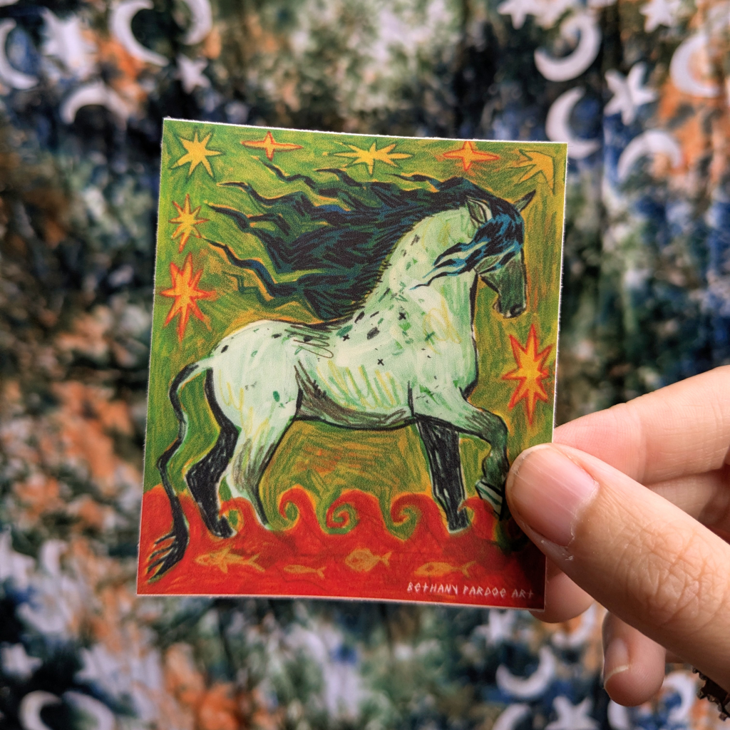 Bethany Pardoe is an artist, illustrator, and writer with a BFA from Emily Carr University of Art and Design. She sells colourful and fantastical prints, stickers, postcards and originals. Item prices range from $3-$100+