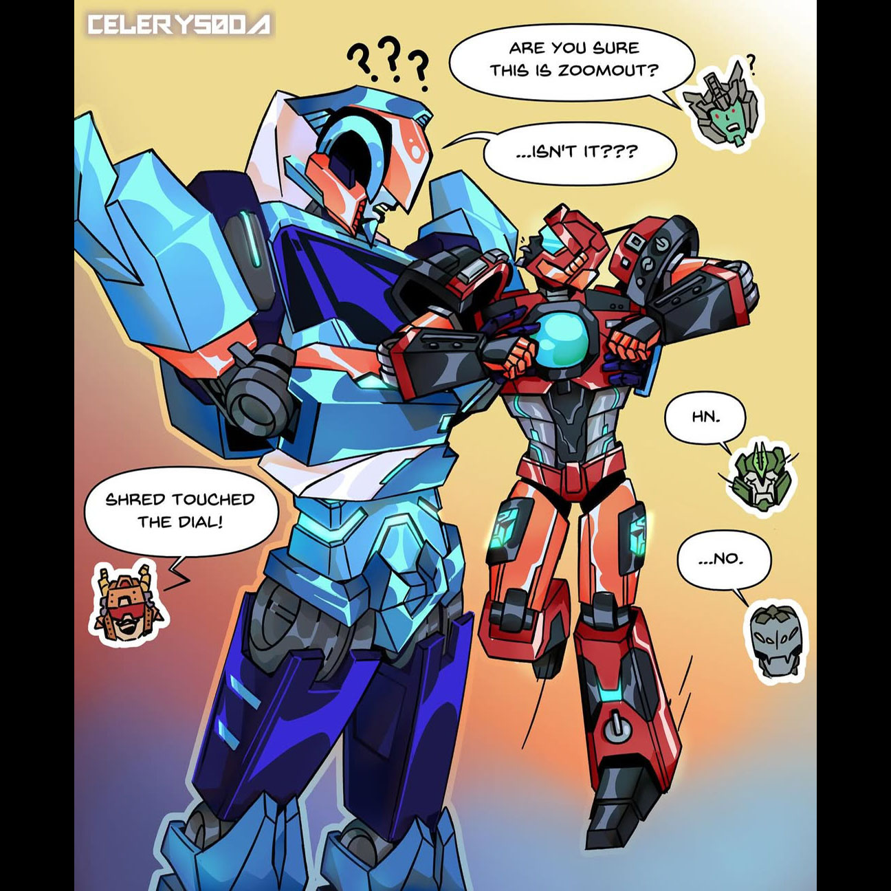 CELERYS0DA is an artist who mainly sells art (prints, stickers, keychains, pins, zines etc) of robots! Some fandoms he draws are Transformers (IDW and Transformers: One), ULTRAKILL and Electric Dreams.