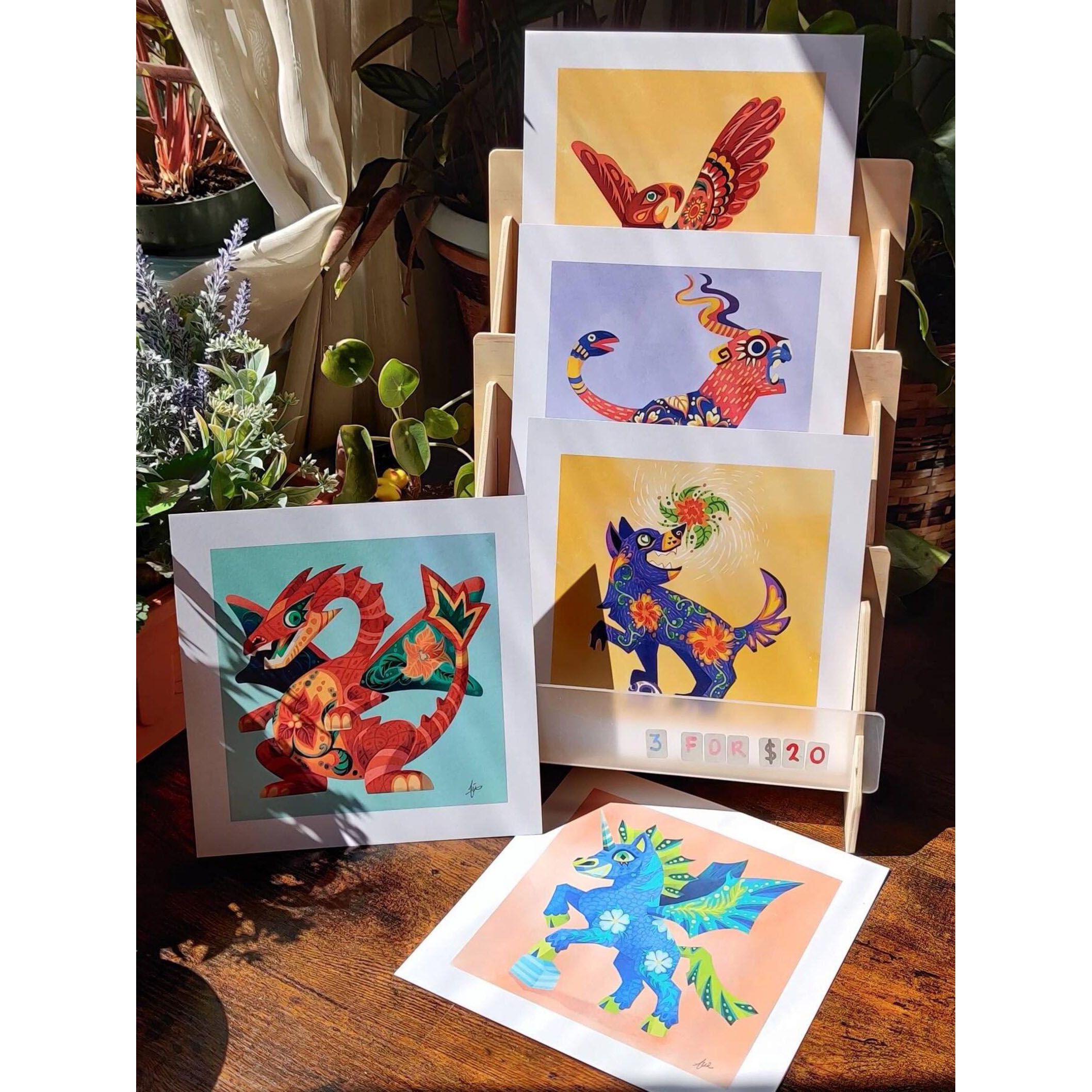 Magical Reveries sells her magical fantasy art. She is a fantasy illustrator who sells prints, stickers, originals, sculptures of baby dragons, 3d printed items that are her original designs, bookmarks, colouring books and more all hand made by her!