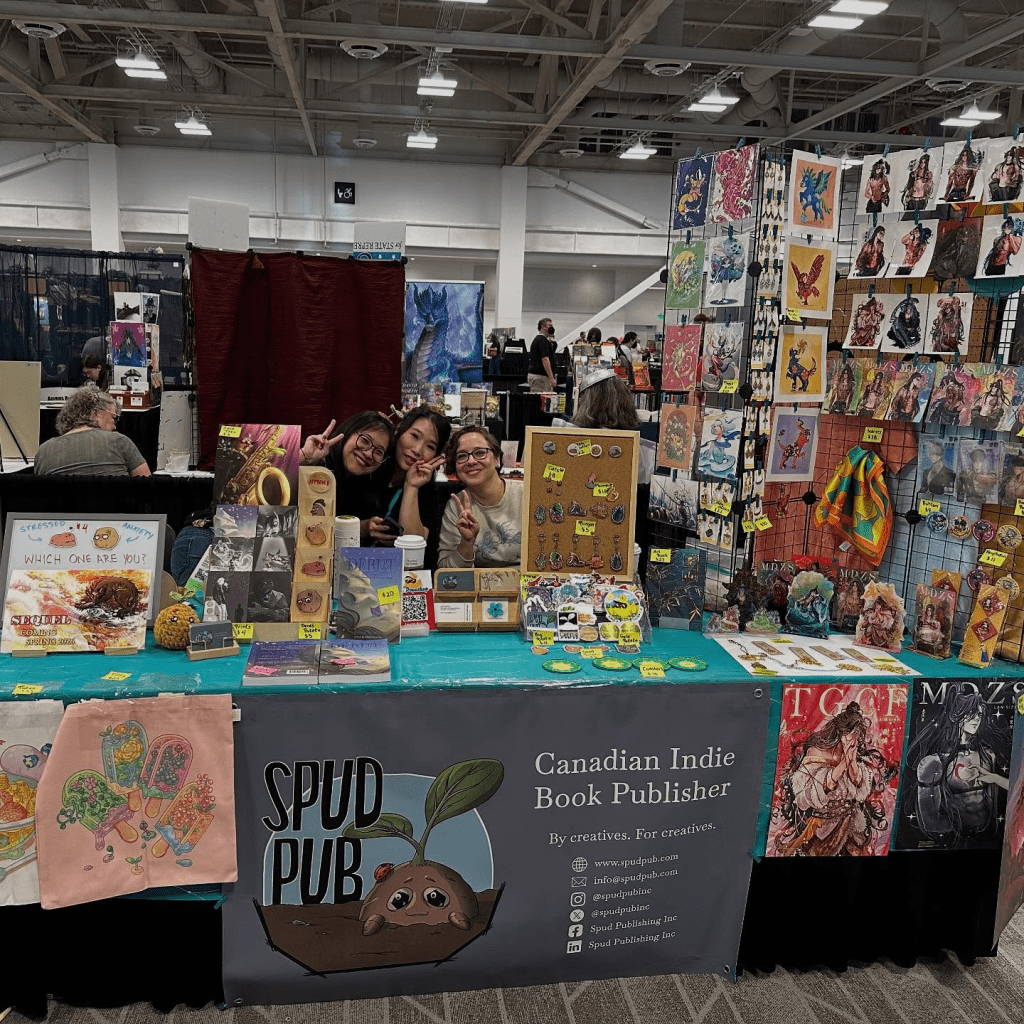Spud Publishing Inc. is a traditional indie publisher based out of Saskatoon, Saskatchewan, currently serving writers in North America. They are an ever-growing publisher, owned by a creative team, and dedicated to making a fair and enjoyable experience for their partners. Spud Publishing believes in supporting and building a team that brings everyone out on top. At the end of the day, they want to create an experience that they would feel good about being a part of. They continue to prioritize the marriage of writing and art in all our endeavours, as they believe one is best served with the accompaniment of the other. They are passionate about what they do! They will be featuring their original publications and merchandise from their partnered artists including but not limited to prints, stickers, pins, and apparel.